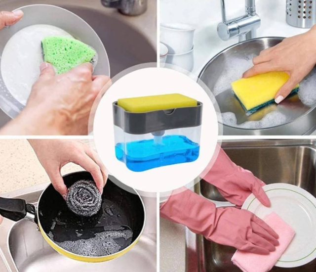 Органайзер для мочалок та миючого засобу Soap Pump Sponge Caddy допоможе тримати все необхідне для миття посуду в одному місці!