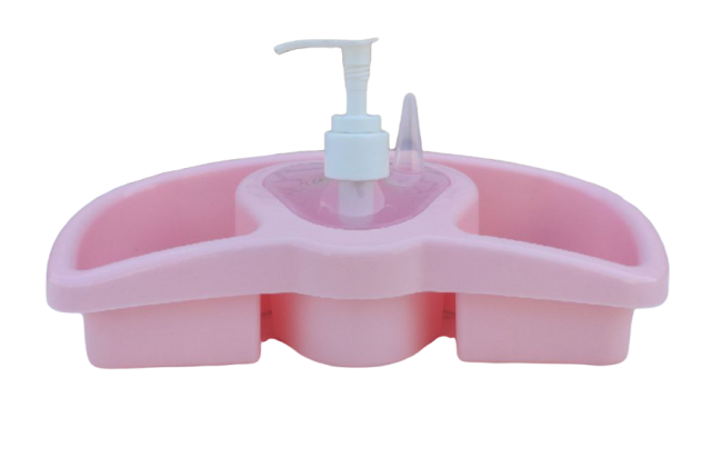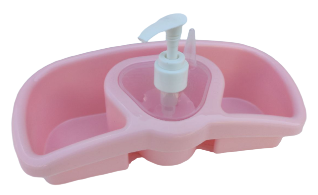 Має вбудований дозатор для рідкого мила або засобу для миття посуду та підставку для губки та щітки