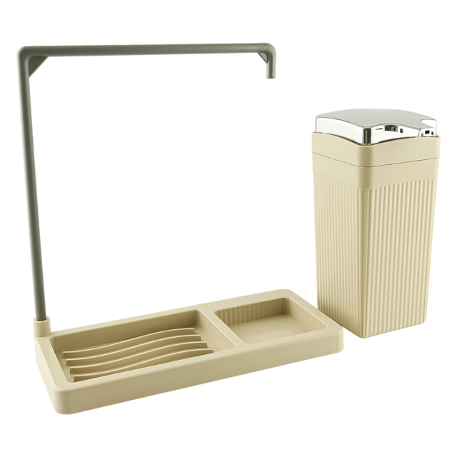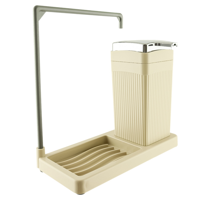 ✔️ Має підставку-тримач для губок чи дрібних аксесуарів, дозатор для мила або миючого засобу та підставку для рушничка або кухонної серветки.